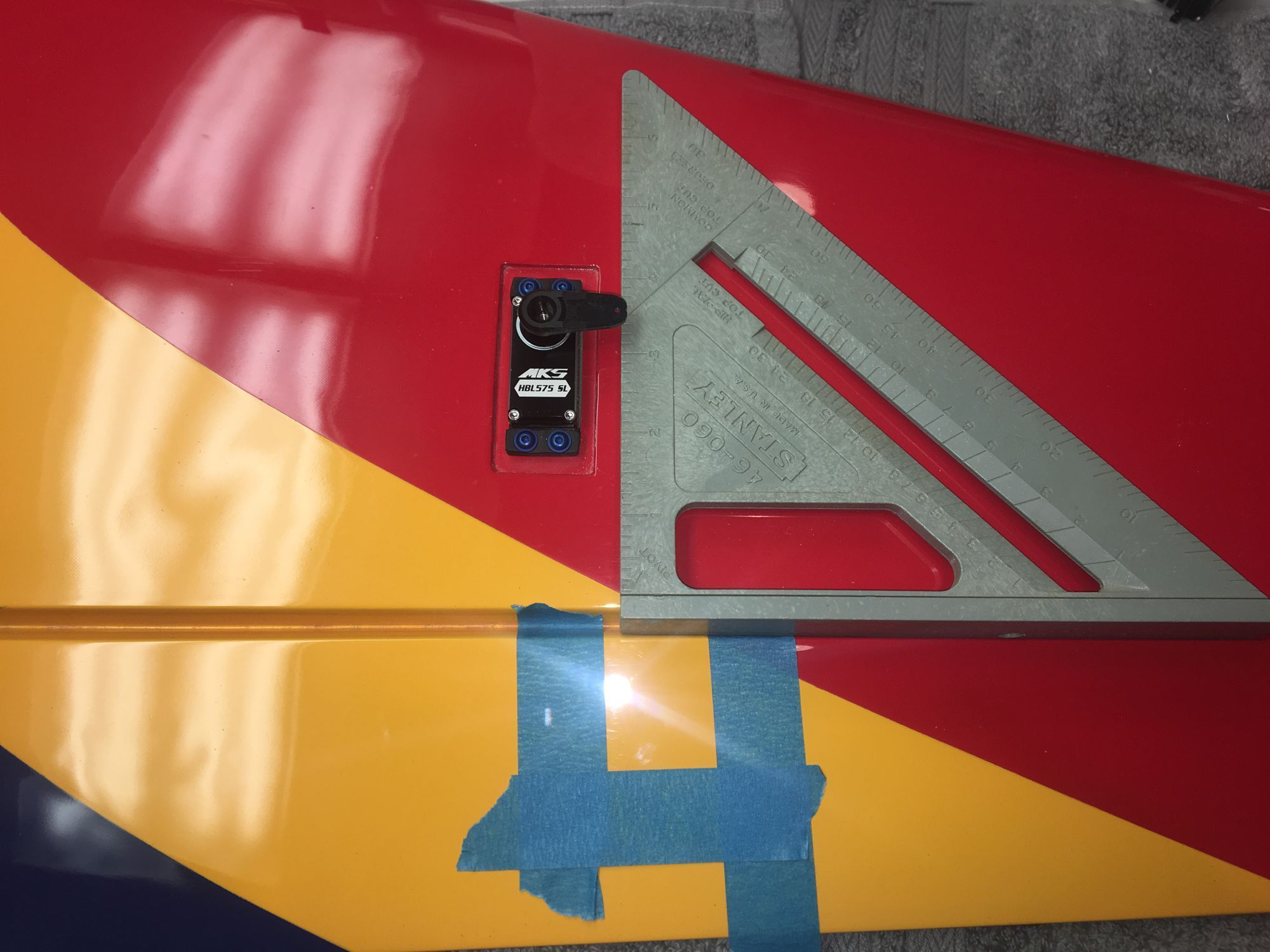 I want the servo and linkage perpendicular to the hinge line. The servo cutout already is. The linkage hole on the horn is 11.5 mm from the edge of the servo case. This puts the horn near the edge of the installation block.
