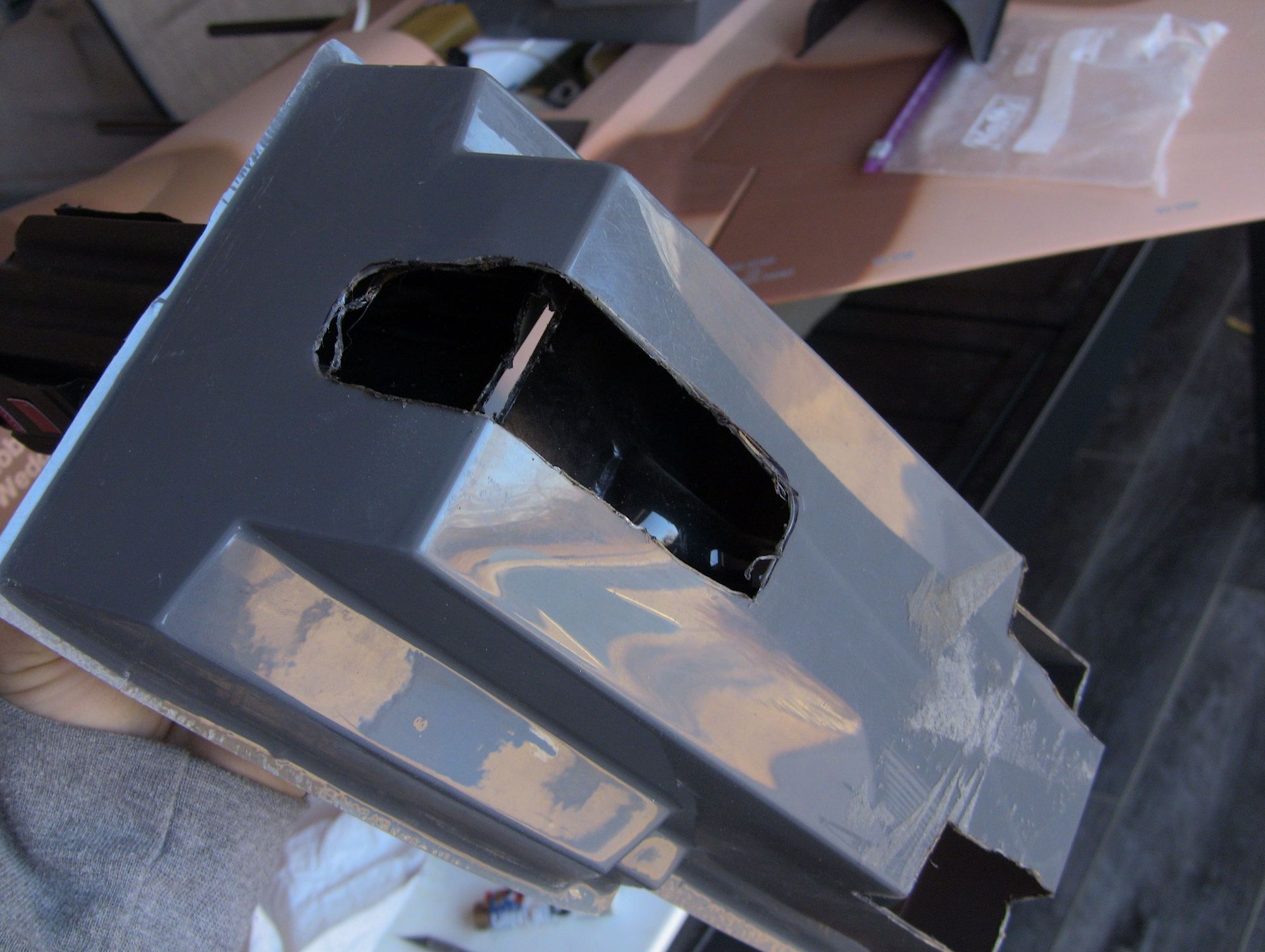 rough cut for fitting, nose gear catapult arm clearance on front bucket
